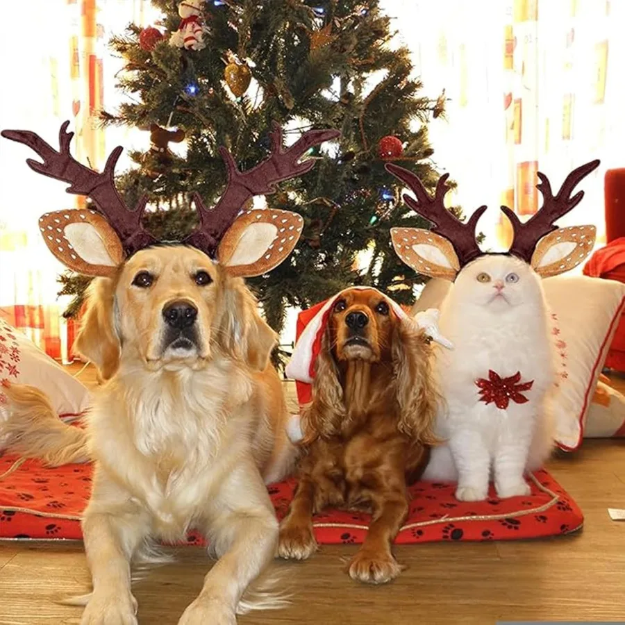 Get your furry friends in the holiday spirit with these festive reindeer antlers and Christmas hat pet accessories! Perfect for dogs and cats, this fun holiday costume adds a touch of cheer to photos, parties, and family celebrations. Lightweight, comfortable, and easy to wear, it’s the ideal accessory to make your pet part of the festive fun this Christmas season.